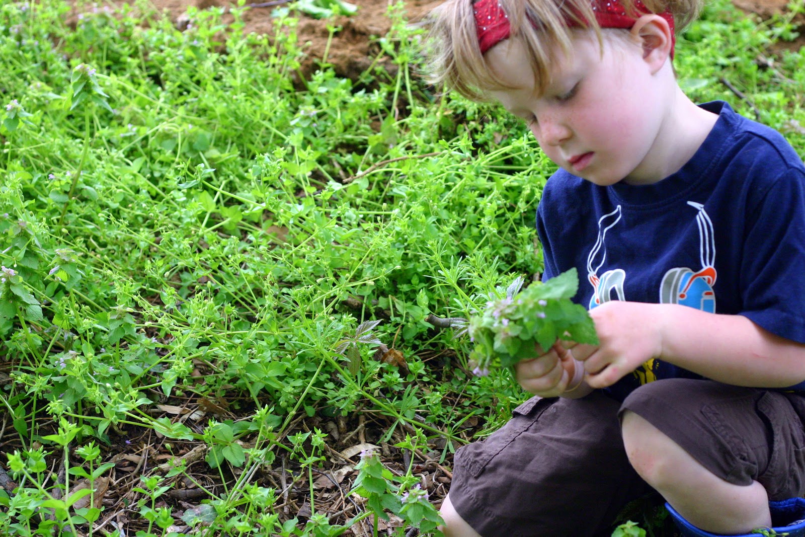 The garden and yard is always full of weeds that need to be picked. The kids love them and always find beauty in each little one they find. We have tiny bouquets all over the house. We have also started to enjoy eating them. We have learned about so many different weeds that are edible and delicious. The kids run out in the yard and grab some chickweed to munch on and my sister in law turned me on to a big patch of wild garlic mustard that I picked and made a yummy little salad with. Yes, we are growing all kinds of veggies now in our new garden beds, but I want to make sure that we don't forget natures gift of all the beautiful and yummy weeds that grow all around us.